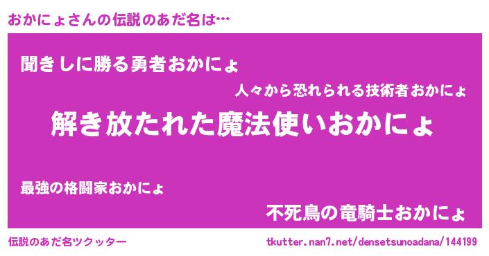 | 胡散臭い通販商品みたいなあだ名 | 『伝統あるサプリメント…その名も「おかにょ」』 |