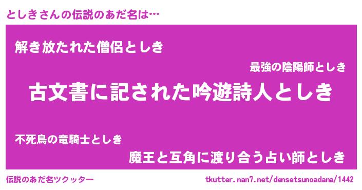 | 意味不明あだ名 | 『永久保存としき』『たけのこ科としき属』 |