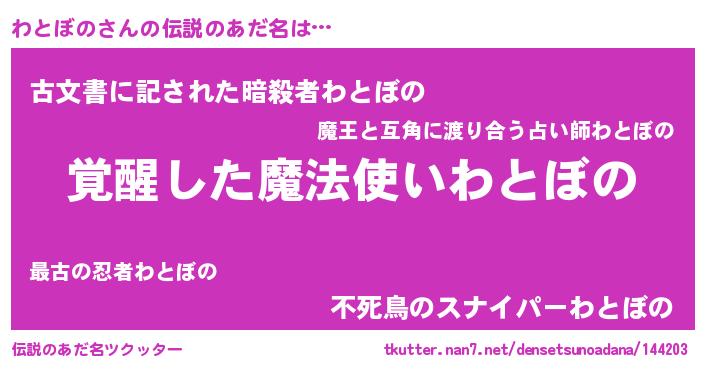 | 胡散臭い通販商品みたいなあだ名 | 『全米が絶賛したサプリメント…その名も「わとぼの」』 |