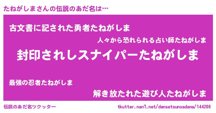 | 意味不明あだ名 | 『ペロリンたねがしま』『自称たねがしま』 |