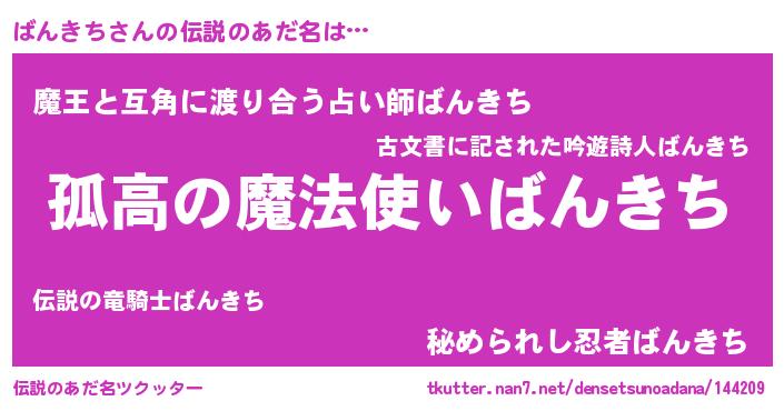 | 胡散臭い通販商品みたいなあだ名 | 『信頼と実績のサプリメント…その名も「ばんきち」』 |