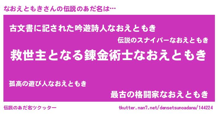 | ヒーロー風カッコイイあだ名 | 『天空の使者なおえともき』 |