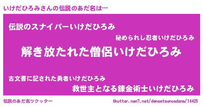 | ヒーロー風カッコイイあだ名 | 『幻影騎士イケ』『スーパーイケダヒロミ』 |