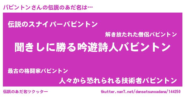 | 意味不明あだ名 | 『永久保存バビントン』『自称バビントン』 |