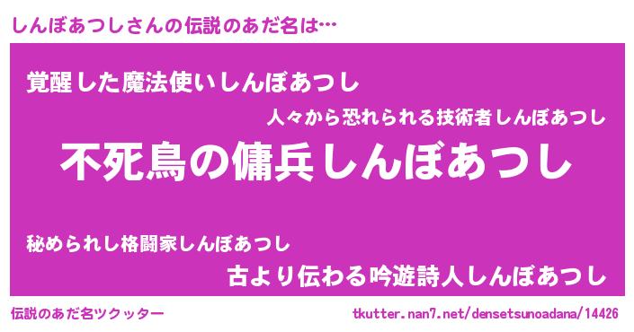 | 男性向けラノベタイトル風あだ名 | 『転生したらしんぼあつしだった件』 |