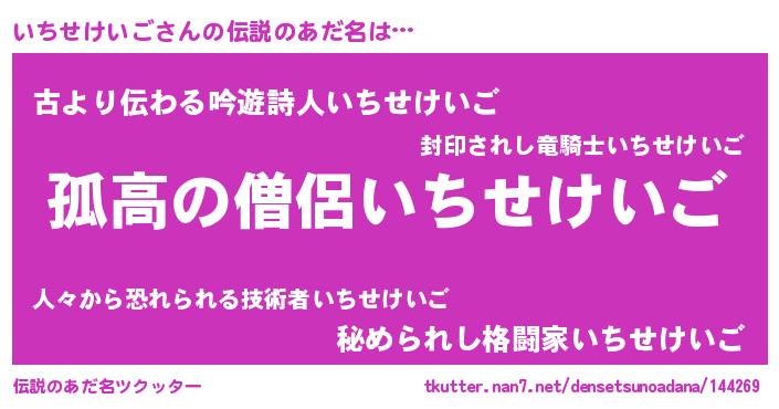 | 意味不明あだ名 | 『自称いちせけいご』 |