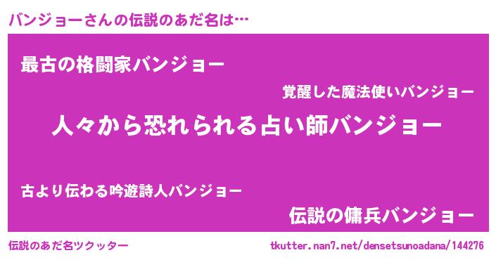 | ヒーロー風カッコイイあだ名 | 『正義の使者バンジョー』『幻影騎士バン』 |