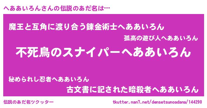 | 胡散臭い通販商品みたいなあだ名 | 『モテモテ間違いなし霊験あらたかなお札…その名も「へああいろん」』 |