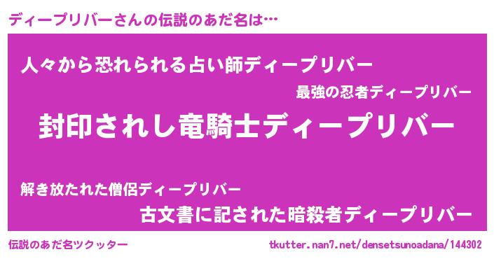 | ヒーロー風カッコイイあだ名 | 『仮面ディダー』『ネオディープリバー』 |