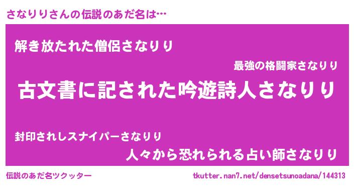 | 意味不明あだ名 | 『永久保存さなりり』 |