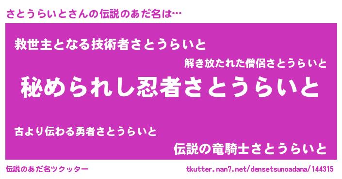 | ファンタジー風あだ名 | 『エターナルサトウライトー』 |