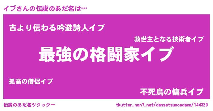 | 意味不明あだ名 | 『イブフォーエバー』『永久保存イブ』 |