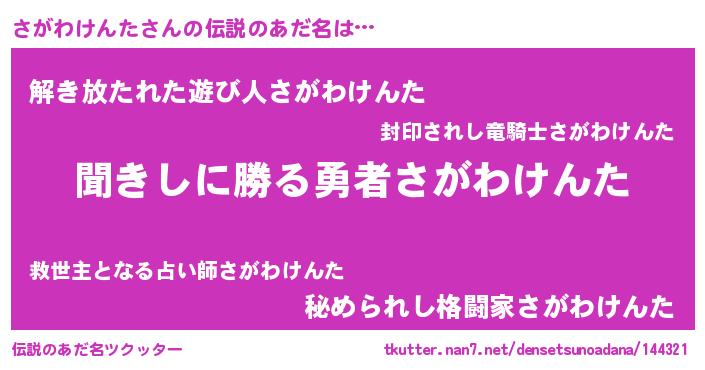 | ヘコむあだ名 | 『さがわけんた(遠い目)』『さがっぺ』 |