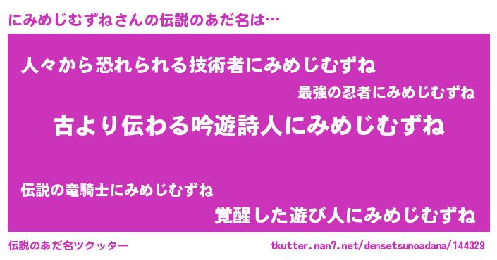 | ヘコむあだ名 | 『にみめじむずね(笑)』『にみを』 |