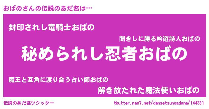 | 胡散臭い通販商品みたいなあだ名 | 『幸せが訪れる高級そうな壺…その名も「おばの」』 |