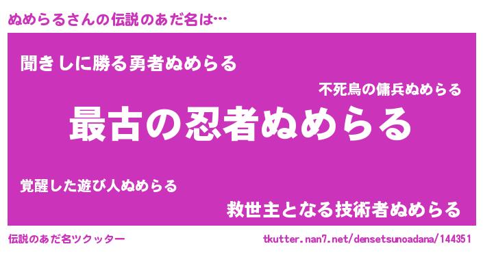 | ヒーロー風カッコイイあだ名 | 『ウルトラぬめらるマン』『ネオヌメラル』 |