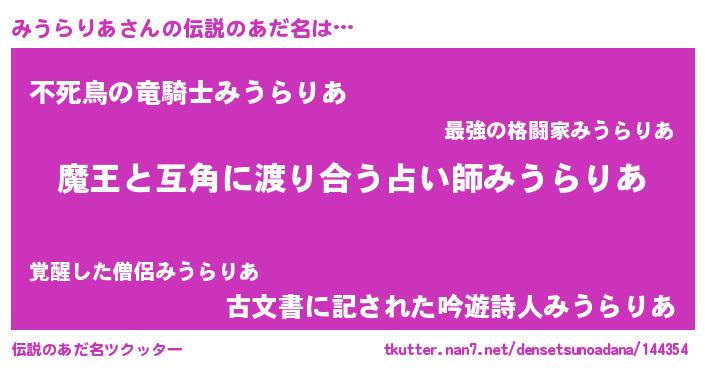 | ヒーロー風カッコイイあだ名 | 『愛の使者みうらりあ』『ネオミウラリア』 |