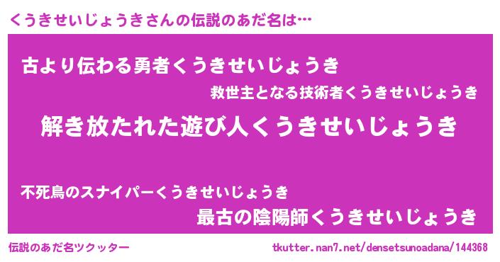| 欧米人風あだ名 | 『ウサインくうきせいじょうき』 |