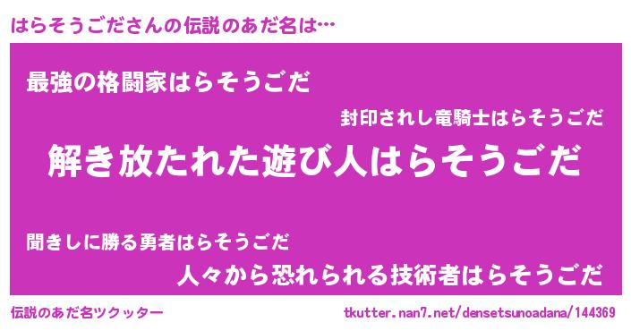 | 意味不明あだ名 | 『住所不定無職はらそうごだ(84歳)』 |