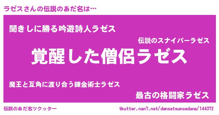 | 意味不明あだ名 | 『とにかく怪しいラゼス』『自称ラゼス』 |