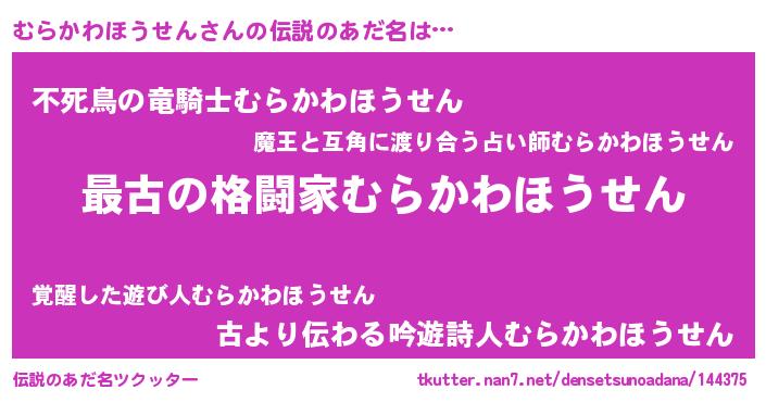 | 意味不明あだ名 | 『住所不定無職むらかわほうせん(12歳)』 |