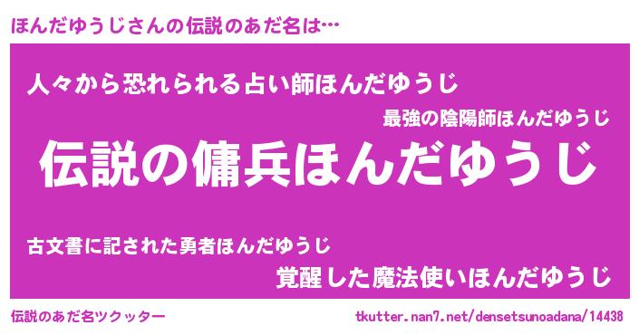 | 男性向けラノベタイトル風あだ名 | 『ほんだゆうじの憂鬱』 |