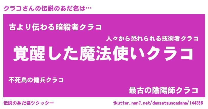 | ヘコむあだ名 | 『クラを』『クラコ(爆)』『なまこ酢』 |