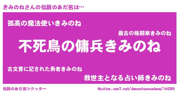 | ヒーロー風カッコイイあだ名 | 『サイバー戦士キミノネ』『炎刃騎士キミ』 |