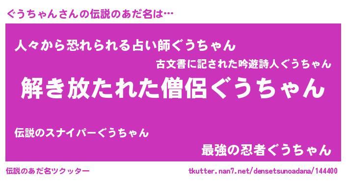| 意味不明あだ名 | 『とにかく怪しいぐうちゃん』 |