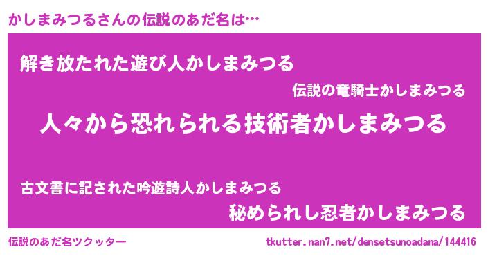 | ヒーロー風カッコイイあだ名 | 『友情の使者かしまみつる』 |