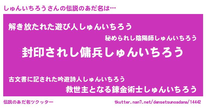 | ヒーロー風カッコイイあだ名 | 『仮面シュダー』『天弓騎士シュ』 |