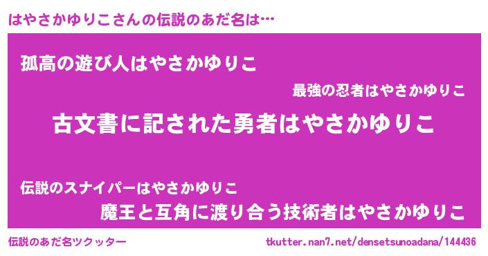| 意味不明あだ名 | 『永久保存はやさかゆりこ』 |
