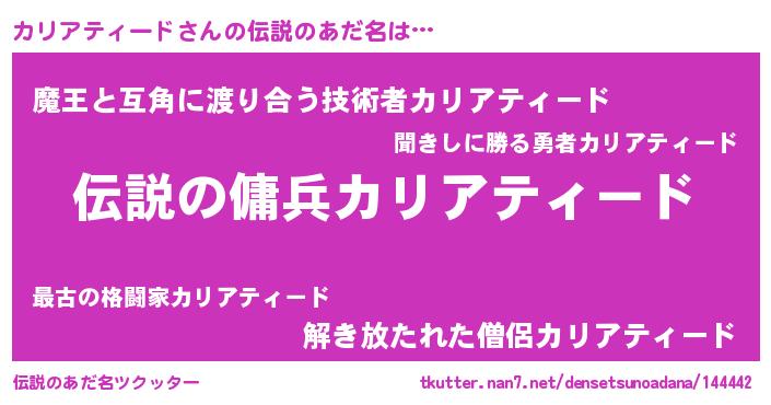| 男性向けラノベタイトル風あだ名 | 『魔弾の王とカリアティード』 |