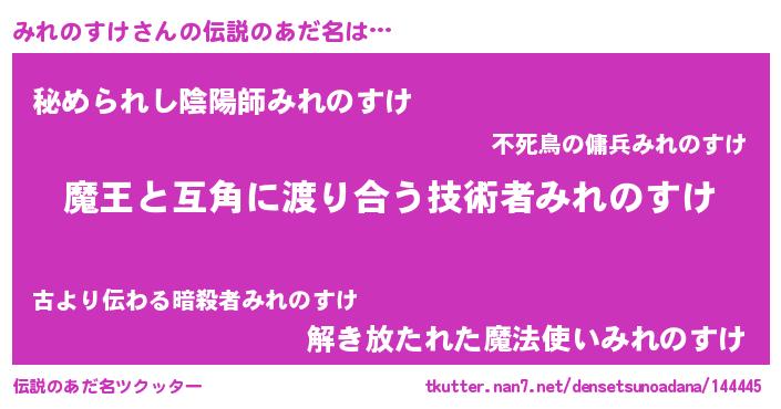 | 意味不明あだ名 | 『住所不定無職みれのすけ(8歳)』 |