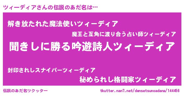 | 意味不明あだ名 | 『永久保存ツィーディア』 |