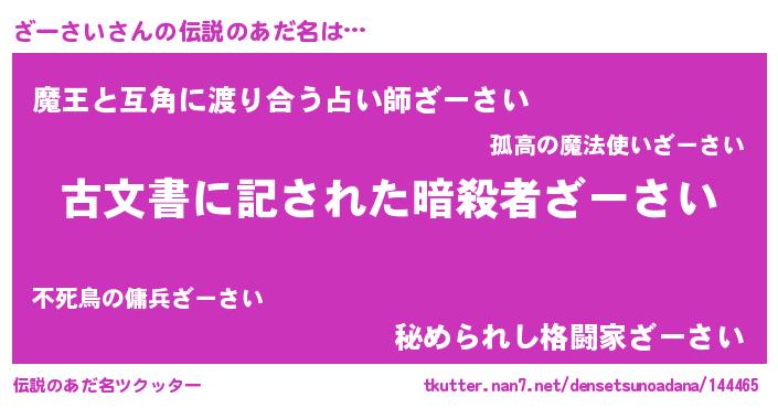 | ヒーロー風カッコイイあだ名 | 『ネオザーサイ』『慈愛の使者ざーさい』 |