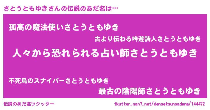 | 胡散臭い通販商品みたいなあだ名 | 『ガンによく効くアガリクス…その名も「さとうともゆき」』 |