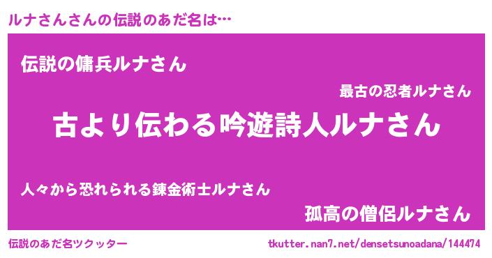 | ヘコむあだ名 | 『ルナさん(笑)』『ルナにー』 |