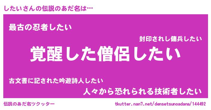 | ヒーロー風カッコイイあだ名 | 『究極戦士シタイ』『魔戒騎士シタ』 |