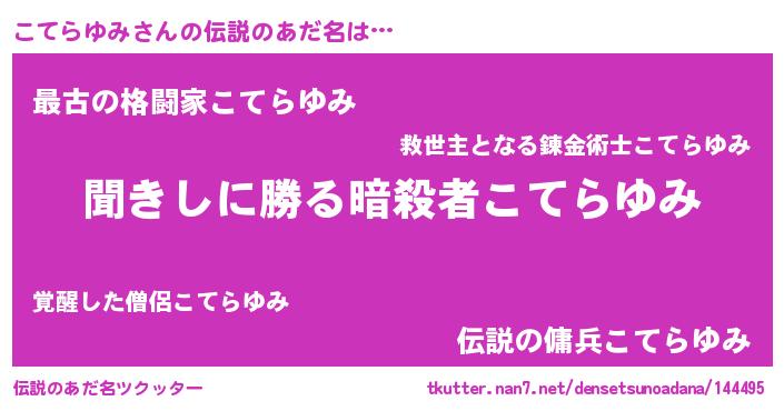 | 意味不明あだ名 | 『自称こてらゆみ』『永久保存こてらゆみ』 |