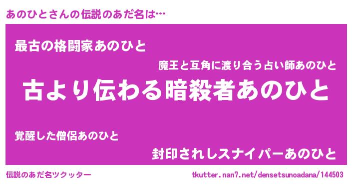 | ヘコむあだ名 | 『あのひと(苦笑)』『つくし』 |
