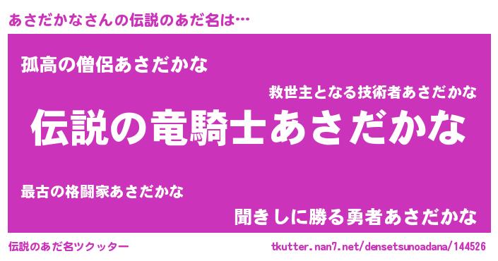 意味不明あだ名 | 『ペロリンあさだかな』『自称あさだかな』 |