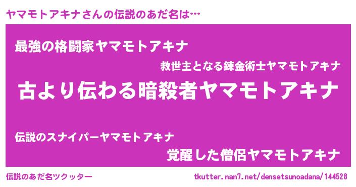 | 男性向けラノベタイトル風あだ名 | 『転生したらヤマモトアキナだった件』 |