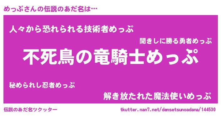 | 意味不明あだ名 | 『ペロリンめっぷ』『自称めっぷ』 |