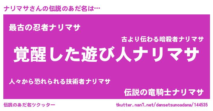 | ヒーロー風カッコイイあだ名 | 『天弓騎士ナリ』『ウルトラナリマサマン』 |