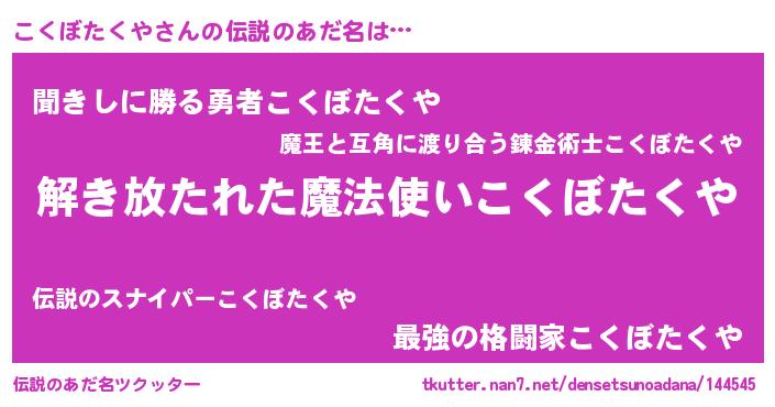 | 胡散臭い通販商品みたいなあだ名 | 『伝統あるサプリメント…その名も「こくぼたくや」』 |