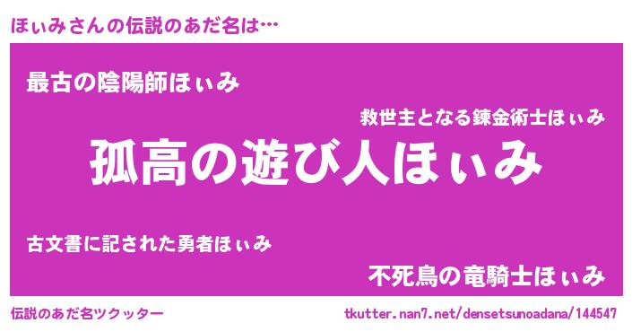 | 男性向けラノベタイトル風あだ名 | 『緋弾のホィミ』『魔弾の王とほぃみ』 |