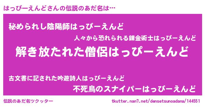 | ポケモン風あだ名 | 『ヒハッピーエンド』『ハッキング』 |