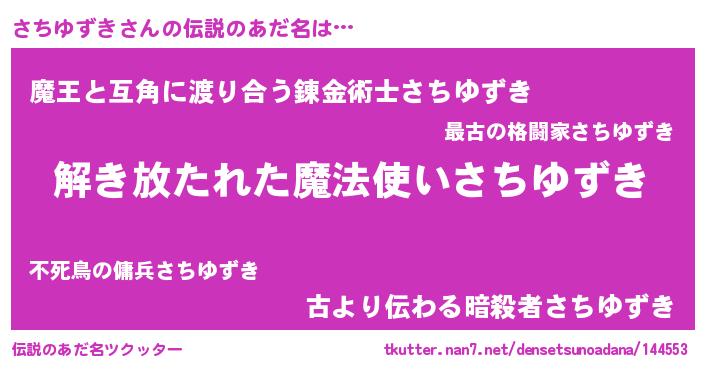 | 意味不明あだ名 | 『とにかく怪しいさちゆずき』 |
