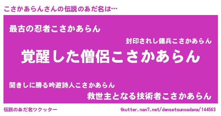 | 胡散臭い通販商品みたいなあだ名 | 『あなたにだけ特別に提供する限定10本のレアな日本酒…その名も「こさかあらん」』 |